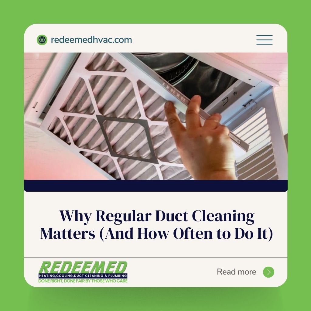 To protect your home from dust, mold, and poor indoor air quality, schedule regular cleaning with Redeemed Heating and Cooling. Their team offers reliable duct cleaning services that remove pollutants and restore efficiency to your HVAC system.